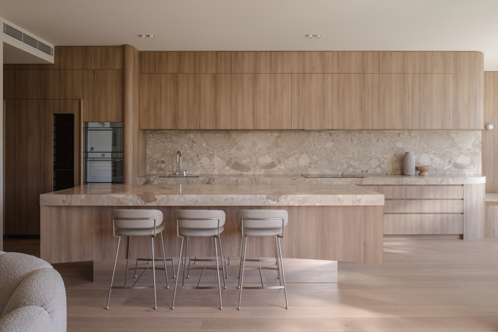 The apartment mix consists of three and four-bedroom residences with generous internal areas and strong indoor–outdoor connections. Shared amenities are consolidated to a rooftop level, incorporating a pool and wellness facilities, while deep planting and integrated landscaping contribute to both resident amenities and the public interface. The project was completed in 2025.