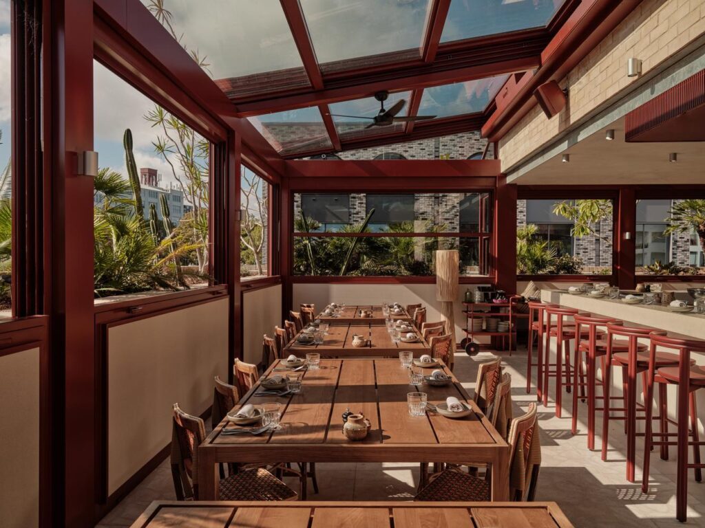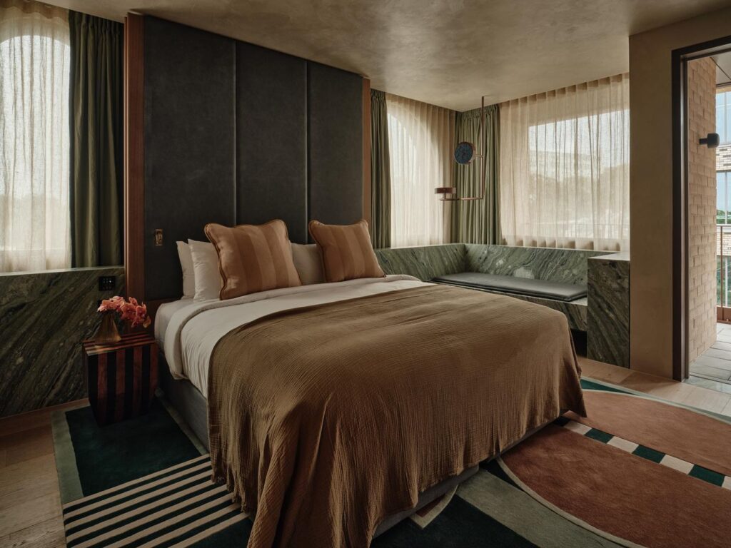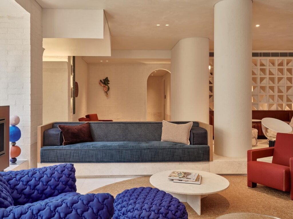 Designed by SJB Architects, with interiors by SJB, Bates Smart and George Livissianis Interior Architecture, the building adopts open-air circulation, deep balconies and climate-responsive design principles. A rooftop pool, destination dining venues and layered public interfaces reinforce the hotel’s role as both a standalone asset and a precinct connector.